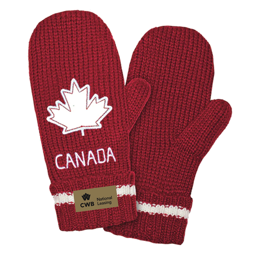 A classic chunky knit mitt branded with Canada embroidery and maple leaf applique.