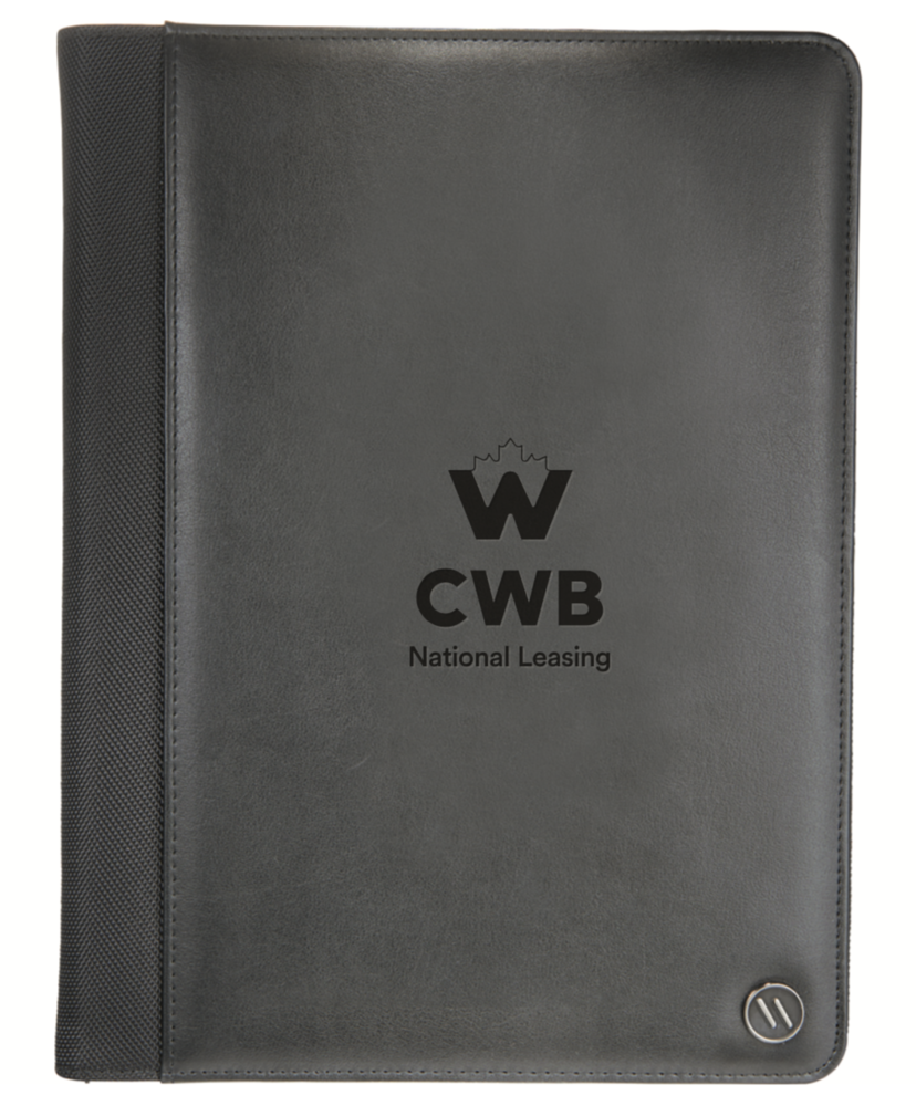 sku: L526-0011-73Zippered closure. Features a front document pocket and an interior document pocket. Interior organization panel includes elleven™ branded travel journal, hook and loop closures serve as pen loops or cable storage, business card pockets and a integrated phone holder for easy access and conferencing. 8.5" x 11" elleven™ series writing pad. Includes premium gift box. Pen not included.